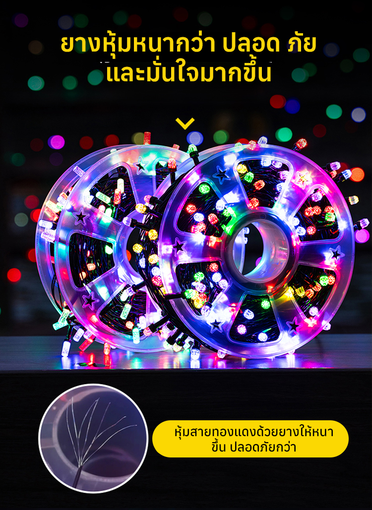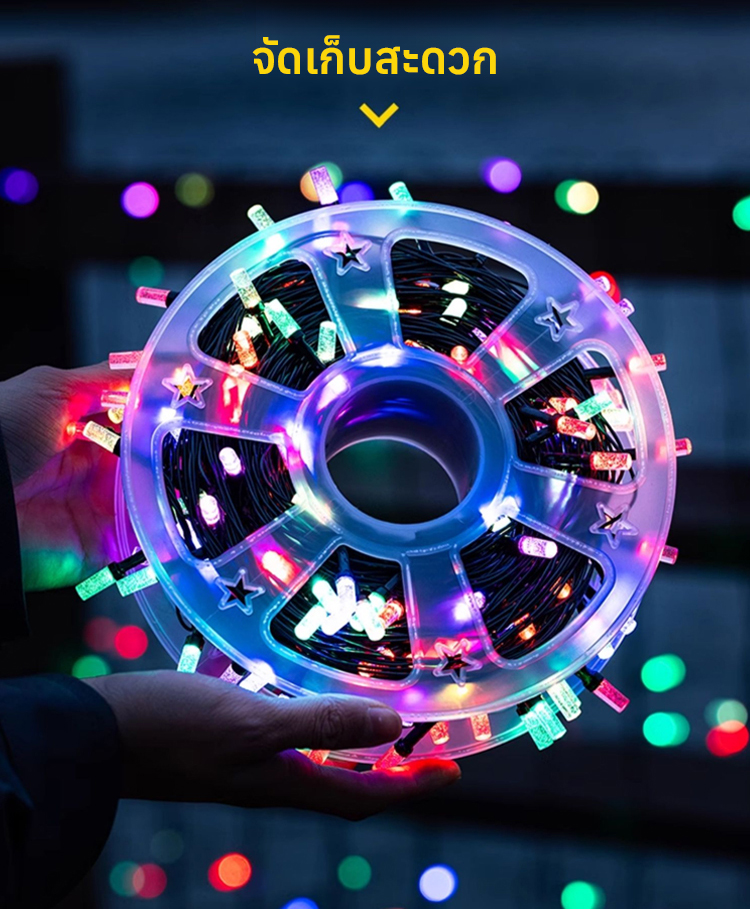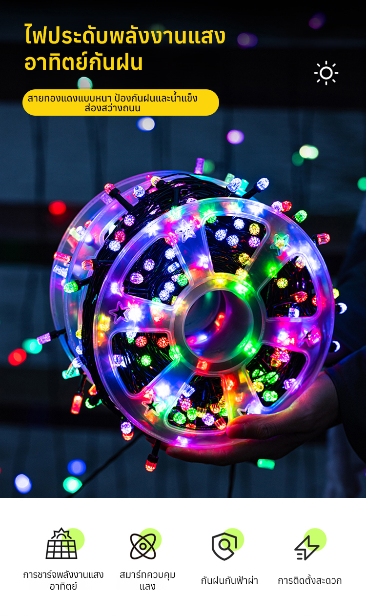 🎉ไฟประดับ พลังงานแสงอาทิตย์ มีระบบเปิดเอง ปิดเอง ปรับกระพริบได้8โหมด มีรีโมทให้ (50เมตร)